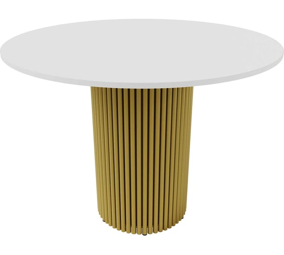 Обеденный стол GENGLASS круглый с металлическим золотым подстольем и белой столешницей TRUBIS Wood GGT-03-1-3-L-100