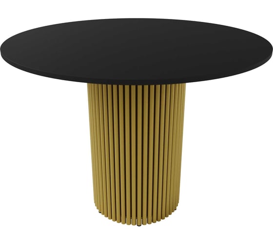 Обеденный стол GENGLASS круглый с металлическим золотым подстольем и черной столешницей TRUBIS Wood GGT-03-1-2-L-100