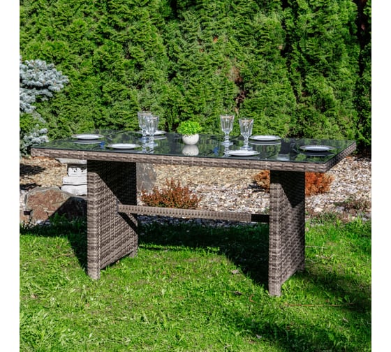 Обеденный стол FIONA из искусственного ротанга серого цвета