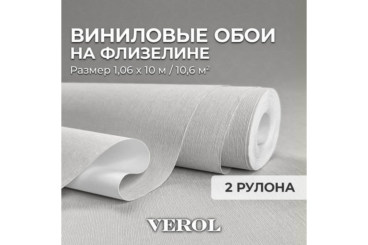Обои флизелиновые Verol 1.06 Серые, виниловые однотонные 2 рулона 21-ФОК-001-2шт