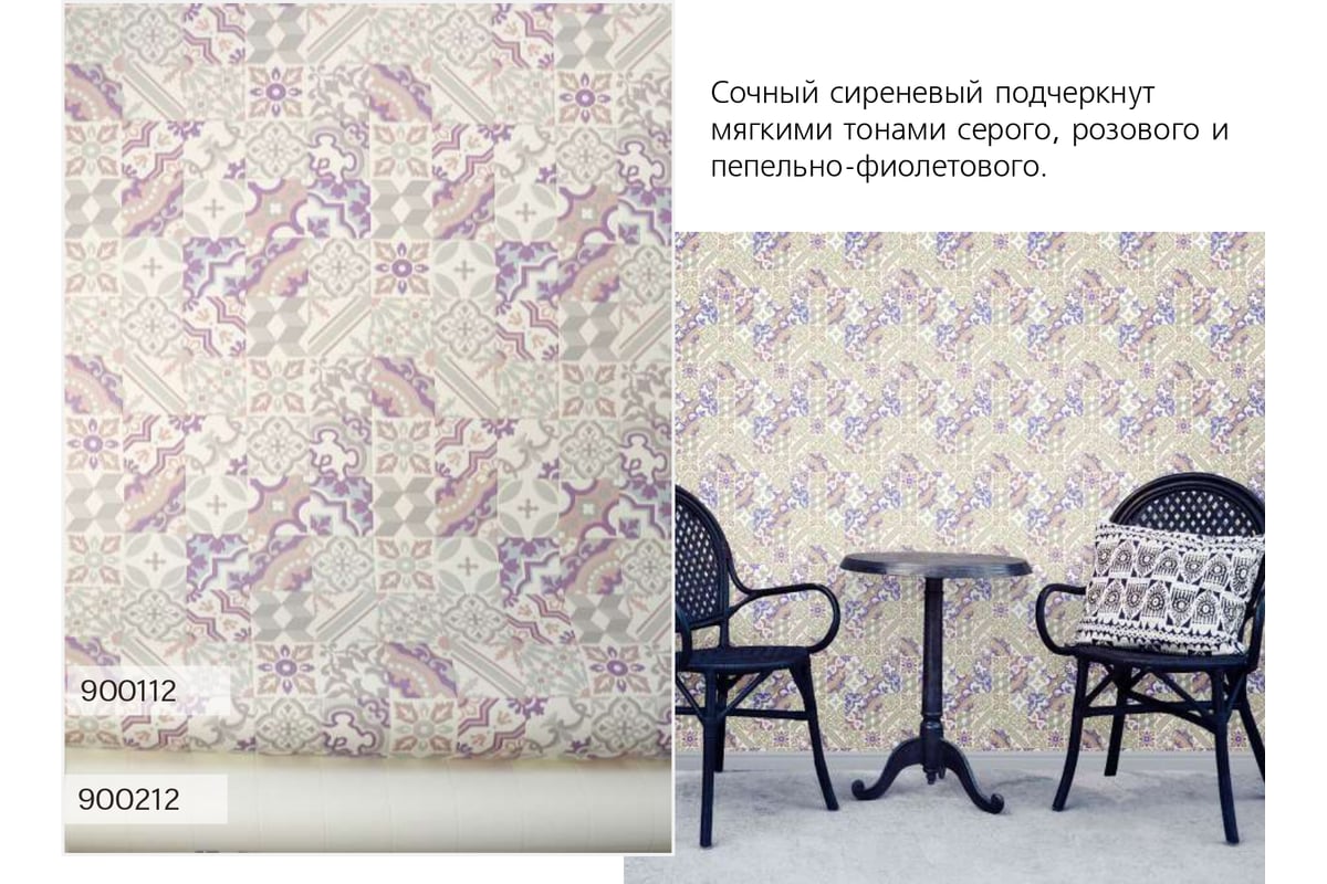 Поверхность обоев гладкая, плотная, устойчива к мытью и трению. Орнаментальные мотивы переданы не буквально, а в графичной стилизации, что позволяет включить их в современный интерьер, придав оформлению яркую изюминку.