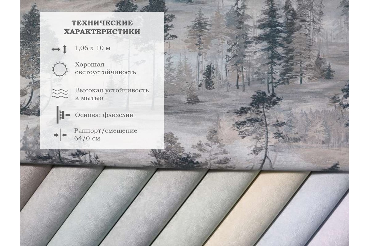 - Обои виниловые на флизелиновой основе Сосновый бор Elysium Е89203 - 4 рулона.