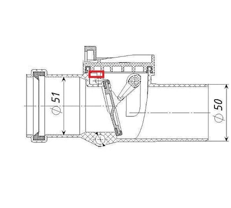 Обратный клапан внутренней канализации TEBO ПП 50, с затвором 013021403-1