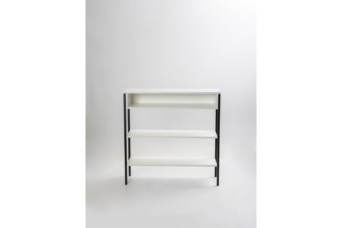 Обувница-этажерка Letta Frame ЛДСП белое тиснение, черный металл 900x900x282 LMK00047