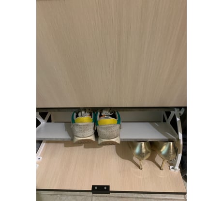 Компактная. Удобное хранение обуви (туфли, шлепки, тапочки, кроссы). Размеры соответствуют заявленным производителем. Отлично вписалась в интерьер. Быстрая сборка.