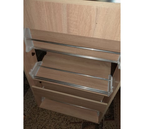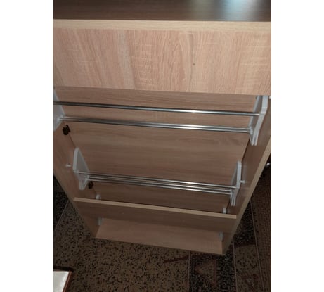 Фото в описании не соответствует. На деле полки независимые, это лучше. Задней стенки нет, только две перемычки. Забивать пластиковые угольники реально стремно шипами на три дырки в фасады... но сдюжили, не сломались и дсп не расщепилось... Мануал по сборке нечитаемый почти, но есть видосы в ютубе...