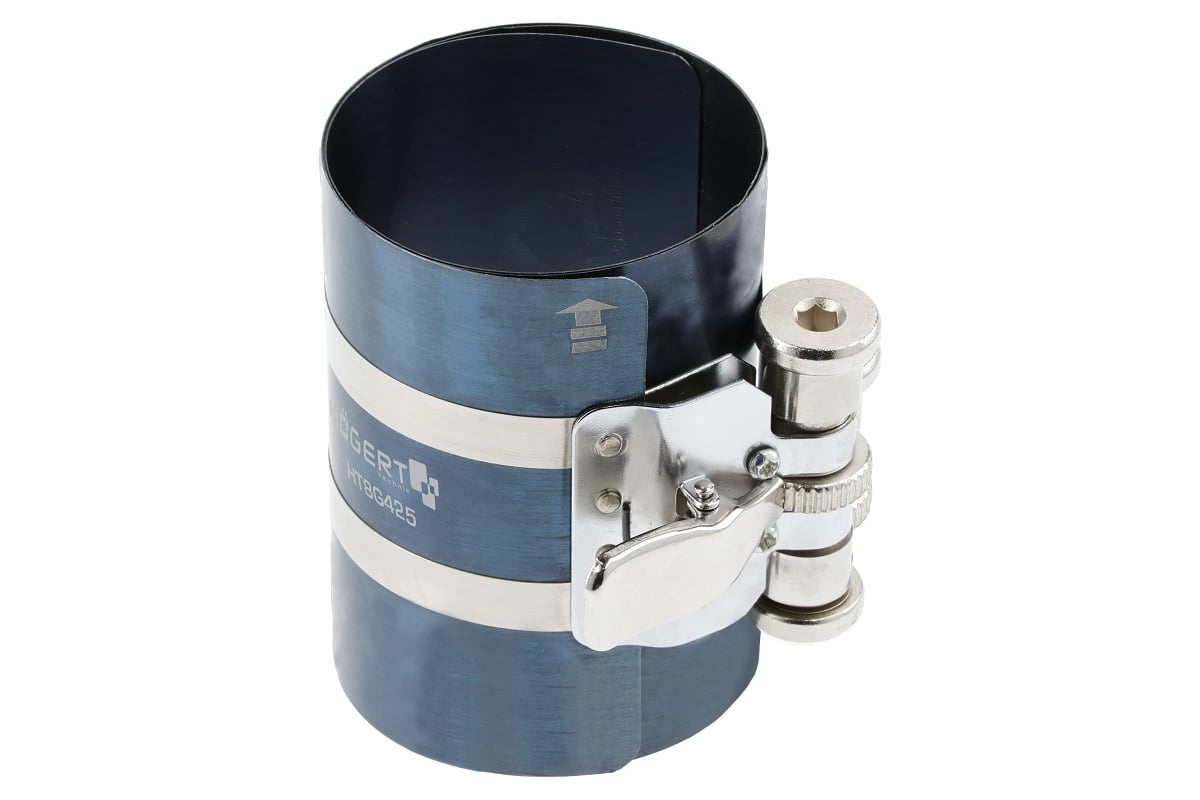 Обжимка поршневых колец HOEGERT TECHNIK 90-175-150 мм HT8G425 предназначена для установки поршней в цилиндры. Изготовлена из упругой стальной пластины SK5. Оснащена винтовой ручкой с замком.