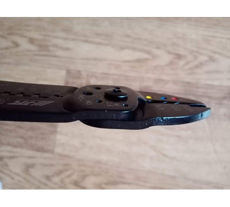 Обжимка внутри оси, жутко неудобно. Откусывал этим недоразумением автомобильные провода, их хватило на 1 день использования, результат на фото, режущие лезвия уже замялись.