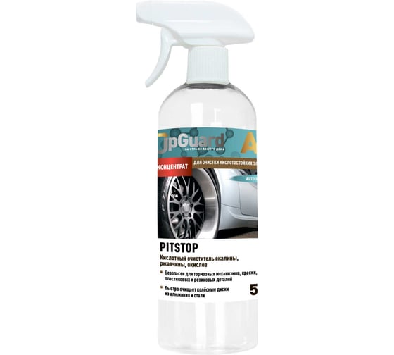 Жидкий кислотный препарат, прозрачный светло-жёлтого цвета. Быстро очищает колёсные диски из алюминия и стали от дорожной грязи, масляной плёнки, окалины от тормозных колодок, ржавчины и окислов. Безопасен для тормозных механизмов, краски, пластиковых и резиновых деталей.