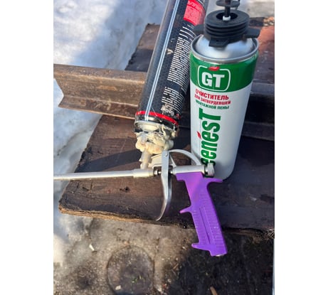 Клапан очистителя предназначен для навинчивания на монтажный пистолет и дополнительно снабжен иглой очистителем, позволяющей направленно наносить раствор.