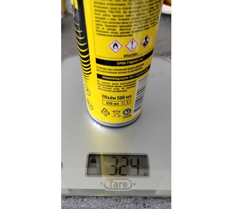 сомнительно. пол-литра аэрозоля, по факту вместе с тарой весят 324гр.