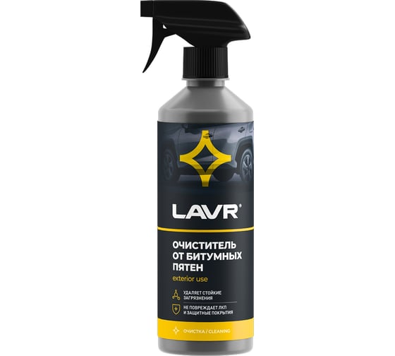 Очиститель от битумных пятен с триггером Lavr 500 мл Ln1403 используют для очищения кузова, бампера, колесных дисков и стекол автомобиля. Состав эффективно удаляет стойкие битумные пятна, смолистые и нефтяные загрязнения. Средство легко смывается водой и быстро высыхает без следов и разводов. Продукт абсолютно безопасен для лакокрасочного покрытия.