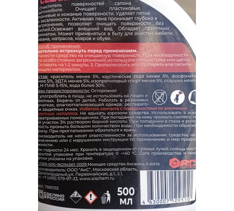 Способ применения: распылить на очищаемую поверхность, зачистить мягкой щеткой или протереть протирочным материалом, убрать излишки протирочным материалом (рекомендуется Х/Б ткань).