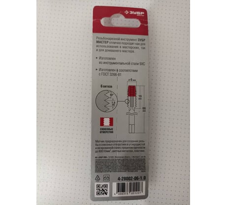 Технические характеристики метчика ЗУБР 4-28002-05-0.8