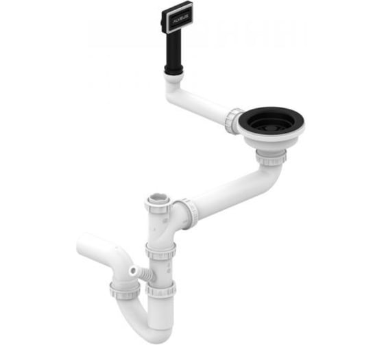 Одинарный сифон для кухонной мойки ALVEUS с переливом и корзинчатым вентилем черный матовый X904812096