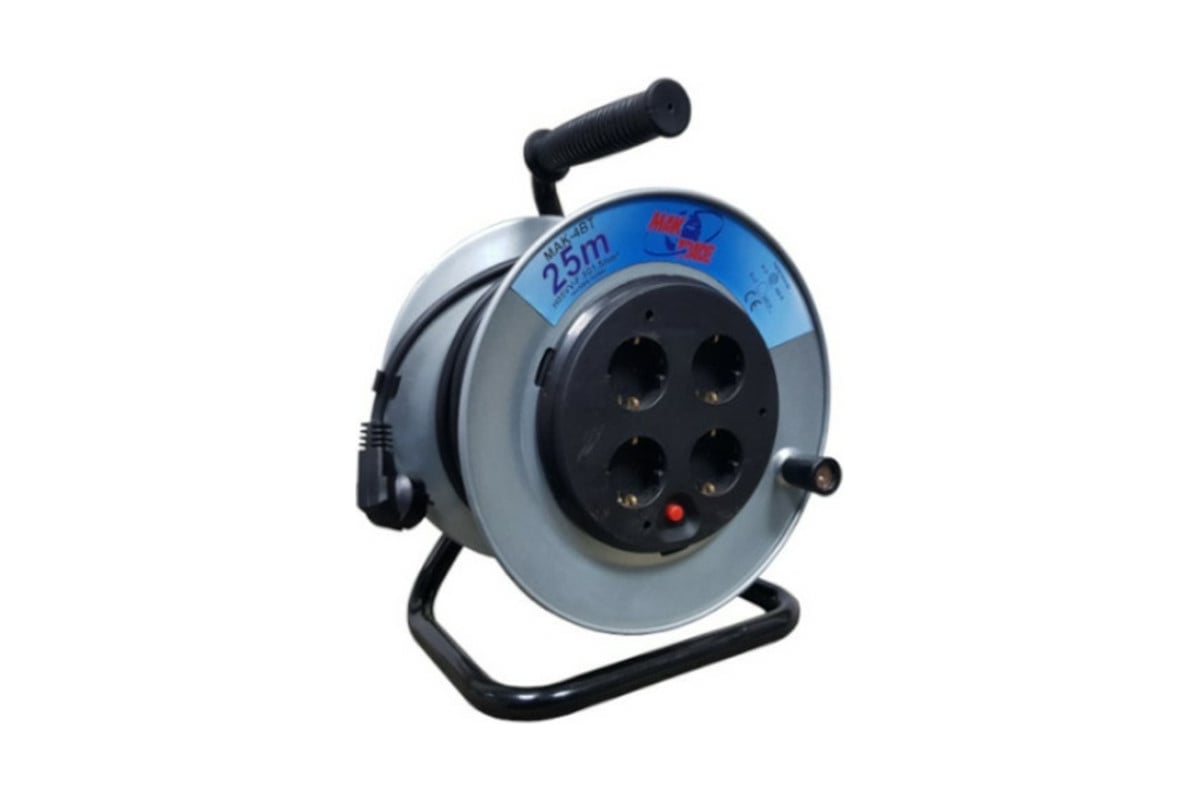 Однофазный удлинитель MTG на катушке металлический, 4X220В MT248А H05VV-F 3x1,50мм2 25м 7335