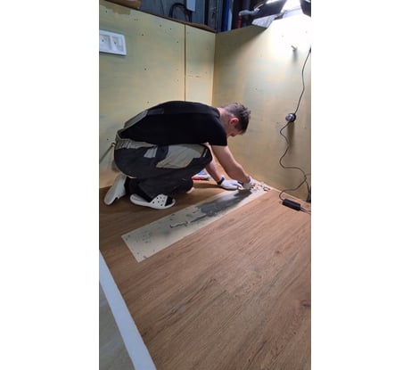 Использовал для LVT покрытия в ванной комнате. По консистенции примерно такой же, как и обычные акриловые клеи, открытое время было вполне нормальным, до 30 минут клей достаточно эластичный. При этом нет необходимости выжидать и подсушивать клей. Примерно через 20 часов менял одну плашку LVT, клей с наливного цементного пола снял без сильных усилий шпателем.