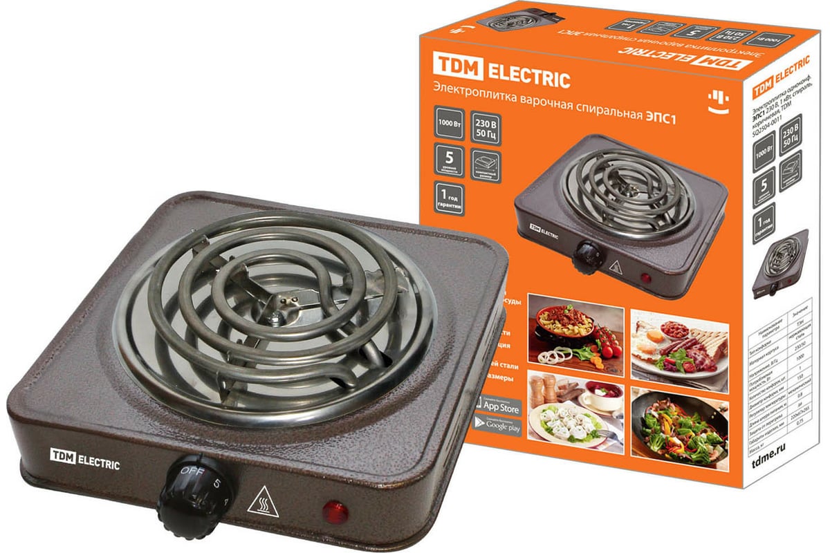 Одноконфорочная электроплитка TDM ЭПД1 230 В, 1 кВт, диск, коричневая SQ2504-0013 предназначена для приготовления блюд.