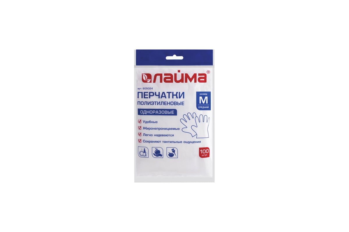 Одноразовые перчатки ЛАЙМА 50 пар, размер M средний, подвес, 605024 защищают руки от грязи, пыли, микробов и т.д.