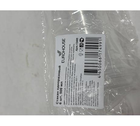 Отзывы об одноразовом стакане EUROHOUSE, 6 шт, 500 мл, прозрачный 13485