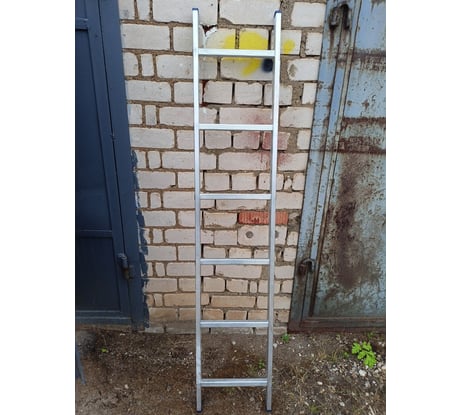 Лестница покупалась для гаража - спуститься в подвал, где постоянно вода, спуститься в яму. Соответственно и храниться должна была в таких же, не самых дружелюбных условиях. И лестница вполне себя оправдала. Из-за того, что сделана из алюминия, несмотря на тяжёлые условия, никаких признаков коррозии не появилось. На удивление прочная - под 100кг амбалом даже не прогибается. Если поставить под нормальным углом, то стоит довольно устойчиво. Для здорового мужика может показаться узковатой, но это проблема большинства лестниц. Лёгкая, можно одной рукой переносить, что удобно.