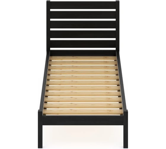Односпальная кровать Solarius Классика из массива сосны с реечным основанием и высокой спинкой, цвет черного оникса, 100x200 см klas-spin100onix