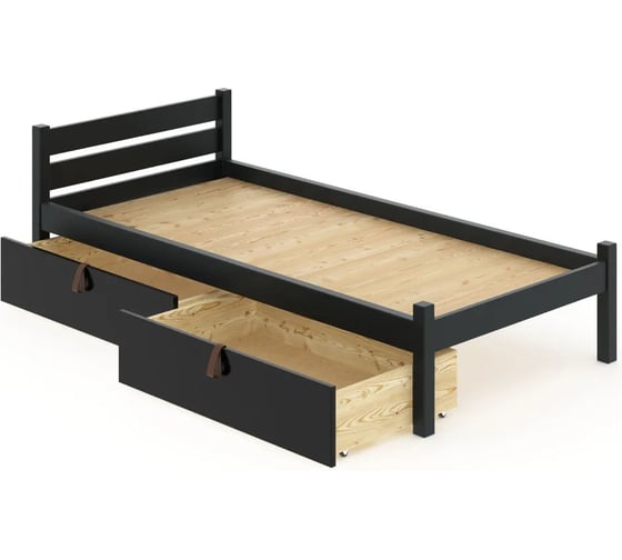 Односпальная кровать Solarius Классика из массива сосны, со сплошным основанием, 190x100 см, габариты 200x110 см, с двумя выкатными ящиками, антрацит 100klser-190-full-2yash