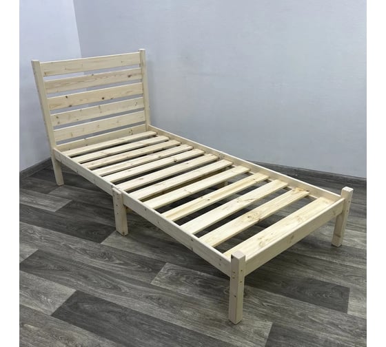 Односпальная кровать Solarius Классика Компакт с высокой спинкой, из массива сосны с реечным основанием, без шлифовки и покраски, 100x190 см kompakt-spin100net-190