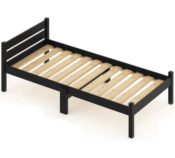 Односпальная кровать Solarius Классика Компакт сосновая с реечным основанием, цвет черного оникса, 90x190 см kompakt90onix-190