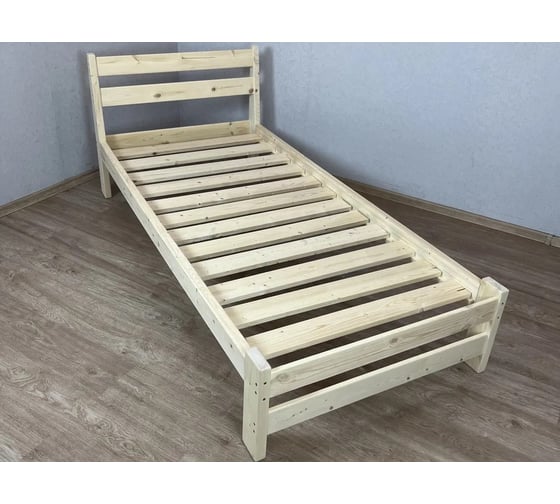 Односпальная кровать Solarius Мишка усиленная из массива сосны с реечным основанием, 190x100 см (габариты 200x110), лакированная 100mlak-190