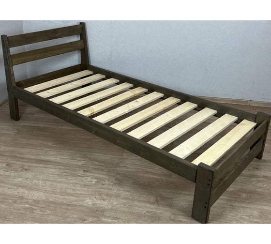Односпальная кровать Solarius Мишка усиленная, из массива сосны, с реечным основанием, 190x100 см, габариты 200x110 см, венге 100mven-190