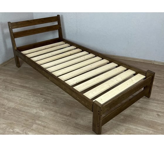 Односпальная кровать Solarius Мишка усиленная из массива сосны с реечным основанием, 190x100 см (габариты 200x110), цвет темный дуб 100mtemd-190