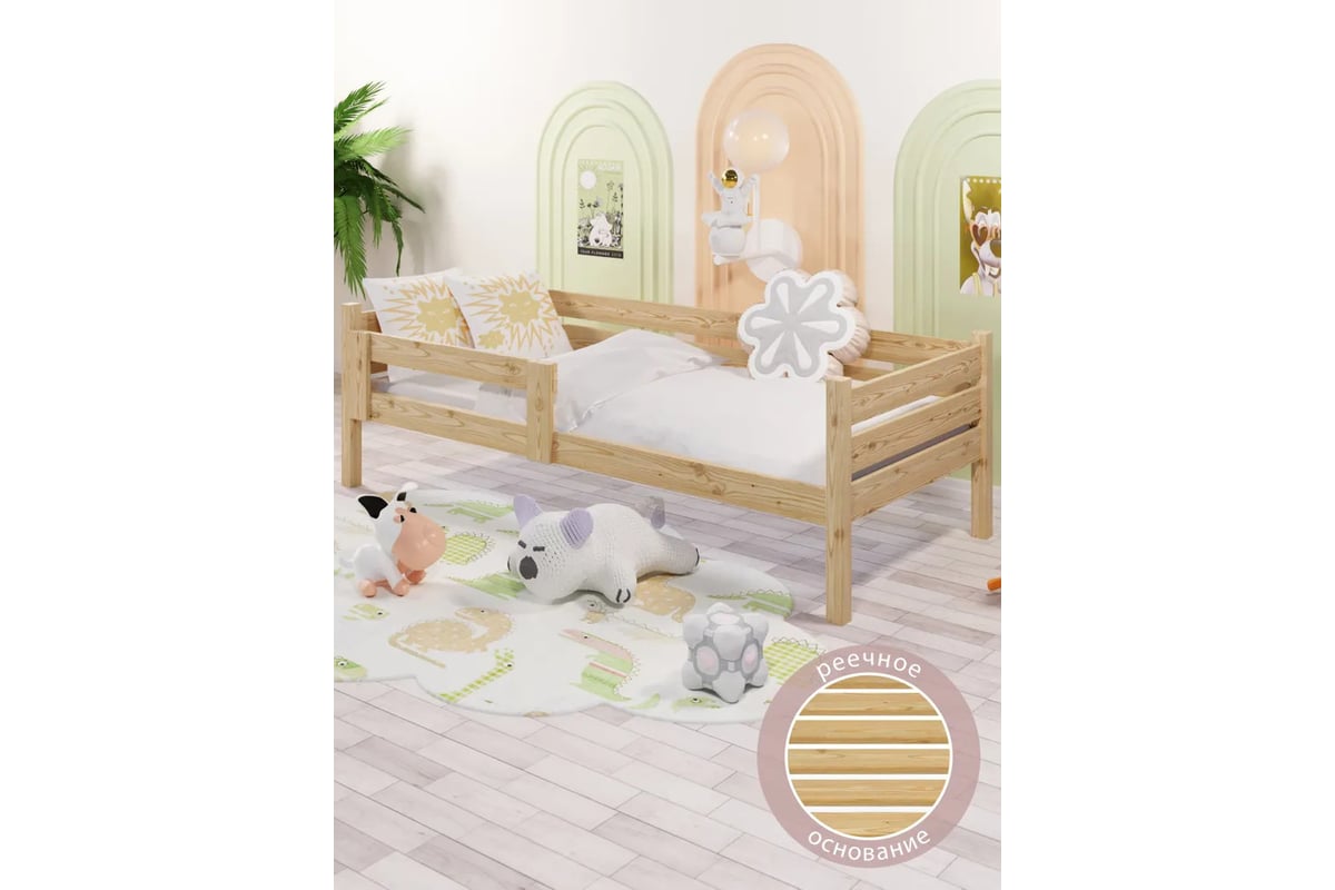 Односпальная кровать Solarius подростковая, из массива сосны, с реечным основанием, 160x70 см, габариты 170x80 см, без покраски det70-160