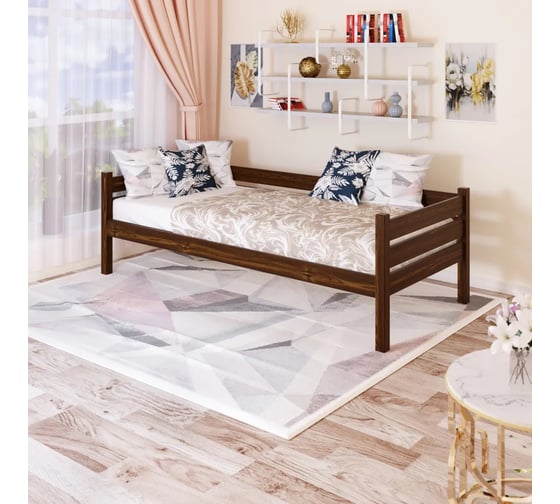 Односпальная тахта Solarius из массива сосны с реечным основанием, 160x100 см (габариты 170x110), цвет темного дуба tahta100-160temd