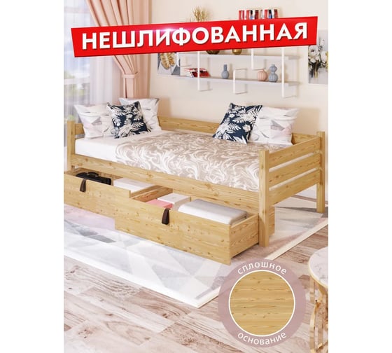 Односпальная тахта Solarius из массива сосны, со сплошным основанием, 200x100 см, габариты 210x110 см, без шлифовки и покраски tahta100-200net-full