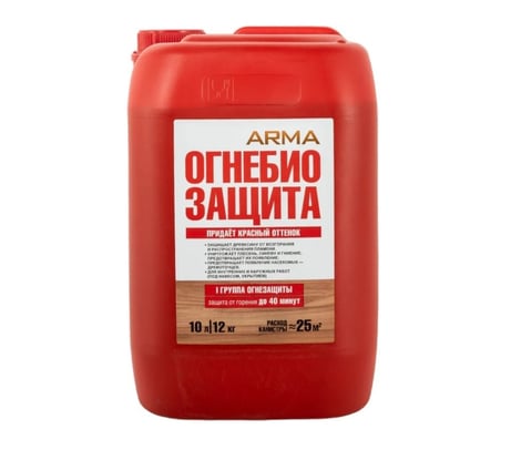 Огнебиозащита 1-й степени ARMA 10 л 49065 предназначена для внутренней и внешней обработки различных конструкций и сооружений (помещения сельскохозяйственного, жилищного, производственного и химического назначения, склады). Продукт эффективно снижает уровень горючести древесины. Антисептические добавки уничтожает плесень и грибок, предотвращая их дальнейшее появление.