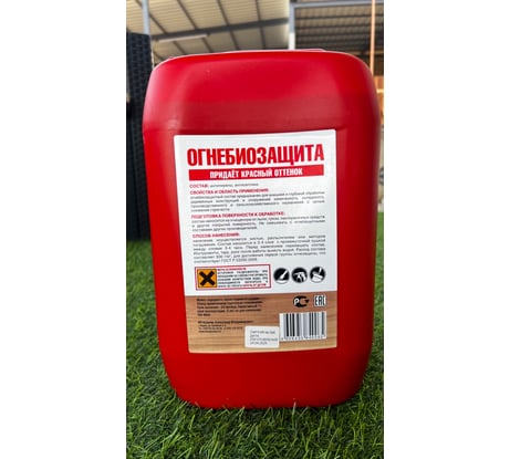 Довольно приличная и недорогая огнебиозащита 1 группы. Цвет - красный. Главное - позволяет наносить состав краскопультом и канистра 12 кг, а не как у многих 9-10кг.