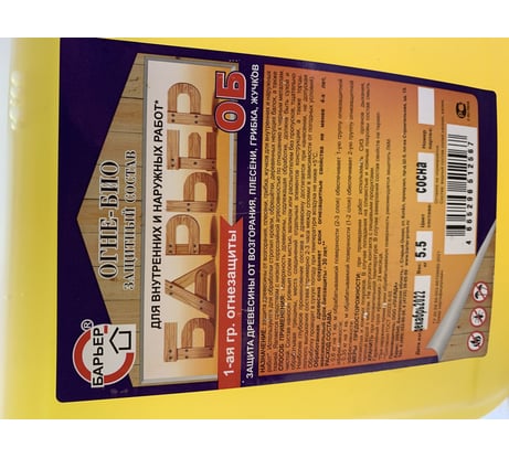 Отзывы об огнебиозащитном составе для древесины БАРЬЕР ОБ сосна желтый, канистра 3,6 кг 4665296512987