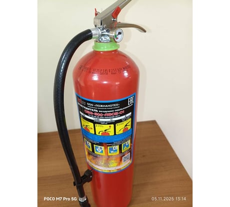 - ОВЭ-5 подходит для тушения пожаров классов: А (твердые горючие материалы, такие как дерево, бумага)