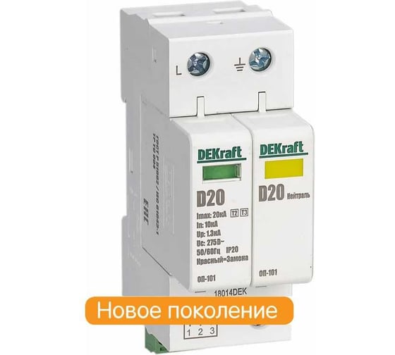Ограничитель перенапряжений Dekraft 3P+N 20кА T2, T3 440В с сигнальным контактом ОП-101 18041DEK