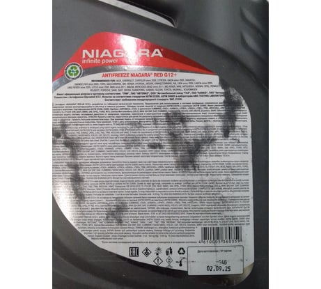 NIAGARA RED – прошел испытания на совместимость с большинством аналогичных антифризов импортного и отечественного производства: Felix Carbox, CoolStream Standard С, Sintec Lux, Glisantin G-30, Castrol SF, Febi 19400 (86400)G-12+, HEPU P 999 G-12, Mobil Advanced, GlycoShell Longlife, Total Glacelf, AWM G-12, с общей формулировкой «Совместима».