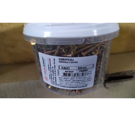 Вопросы и ответы об оконных саморезах Tech-Krep 3,9х32 желтые 500 шт. с буром ведро мал 116809