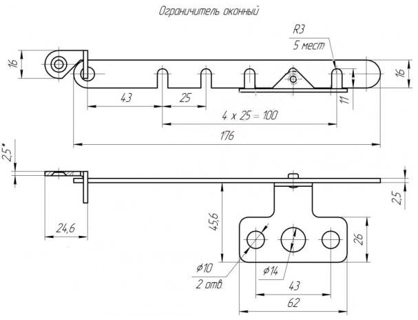 Оконный ограничитель - элемент оконной фурнитуры, позволяющий регулировать расстояние между рамой и открывающейся створкой окна. Предназначена для естественной вентиляции помещения. Ограничитель выполнен из высокопрочного алюминиевого сплава, окрашен полимерной краской. Ограничители можно установить на любое пластиковое, деревянное и алюминиевое окно или двери.