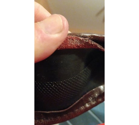 Треснула по шву, вот там то и открылся обман производителя -это не кожа господа, Вас обманывают
