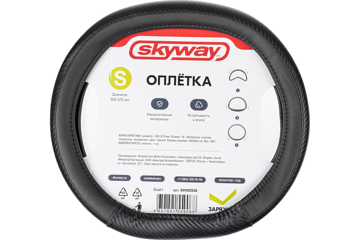 Оплетка 2D-тип экокожа S (35-37 см) SKYWAY Mix Dual-1 Черная - современная оплётка с плоской верхней и нижней гранью, скроет имеющиеся потёртости и царапины, предотвратит появление новых. Обеспечивает надёжный контакт ладоней с ободом руля. Оплётка выполнена из высококачественной экокожи и ПВХ которая сохраняет привлекательный внешний вид в течение длительного времени, проста в уходе, износостойкая. За счет многослойной структуры не нагревается при воздействии солнечных лучей, в зимнее время нехолодная на ощупь. Применение инновационных материалов на внутренней стороне оплетки исключает её проскальзывание. Аккуратно выполненные швы - гарантия высокой долговечности.