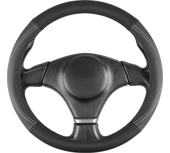 Оплетка SKYWAY натуральная кожа M (37-39 см) Design Real-13 Черная, белая строчка S01108042