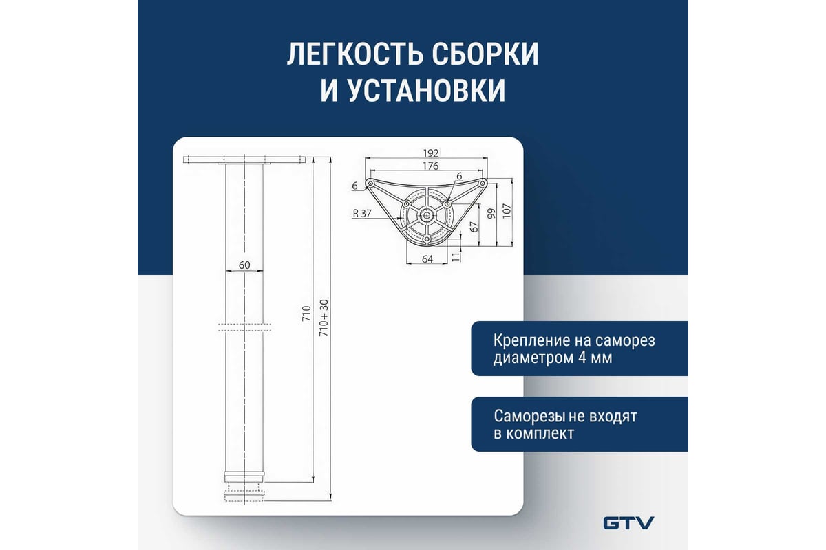 Внимание! Шурупы для крепления опоры к столешнице приобретаются отдельно.