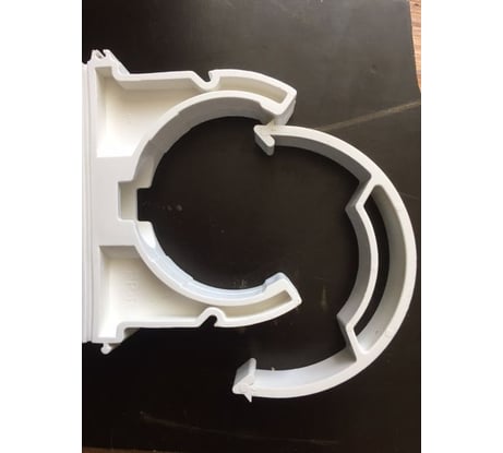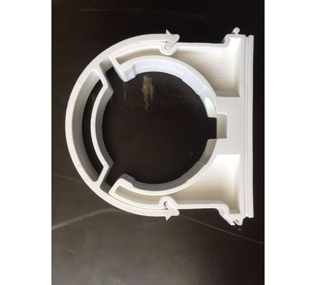 Крепкий белый пластик. Легкое вхождение 75 трубы. Надежное крепление ремешком для жесткости.