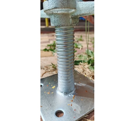 С помощью винтовой опоры можно выровнять нижний ярус лесов для правильной дальнейшей сборки всей конструкции.