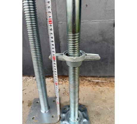 Винтовые опоры (домкраты) способны обеспечить устойчивость и ровную горизонтальную плоскость рабочего места на строительных лесах.